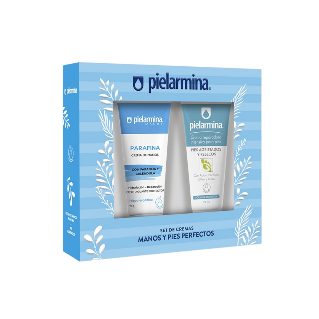 Este set de Pielarmina está diseñado para brindarte un cuidado completo para tus manos y pies. Incluye dos cremas con fórmulas específicas para cada necesidad: